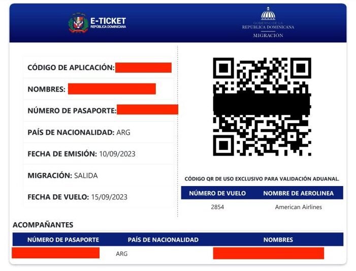 E-Ticket Electrónico de entrada y salida de la República Dominicana